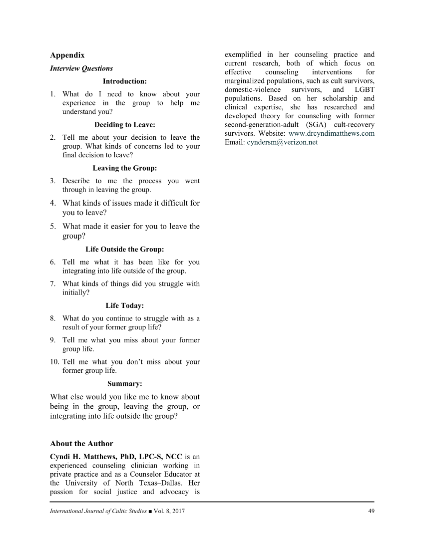 International Journal of Cultic Studies ■ Vol. 8, 2017 49